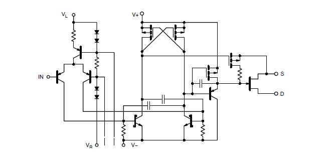JM38510/11105BIC absolute maximum ratings: (1)V+ to V-: 36 V; (2)V+ to VD: 33 V; (3)VS, VD to V-: -0.3 to 33 V; (4)VD to VD: ±22 V; (5)VL to V-: 36 V; (6)VL to VIN: 8 V; (7)VL to VR: 8 V; (8)VIN to VR: 8 V; (9)VR to V-: 27 V; (10)VR to VIN: 2 V; (11)Current: 30 mA; (12)Storage Temperature: -65 to 150℃; (13)Power Dissipationa: 16-Pin Sidebrazeb: 900 mW; 14-Pin Flat Packc: 900 mW.